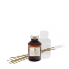La recharge Parfum d’Intérieur 100ml prolonge votre senteur préférée. Accompagnée de ses tiges en rotin, elle révèle l'accord parfumé et vous invite à poursuivre le voyage sensoriel.